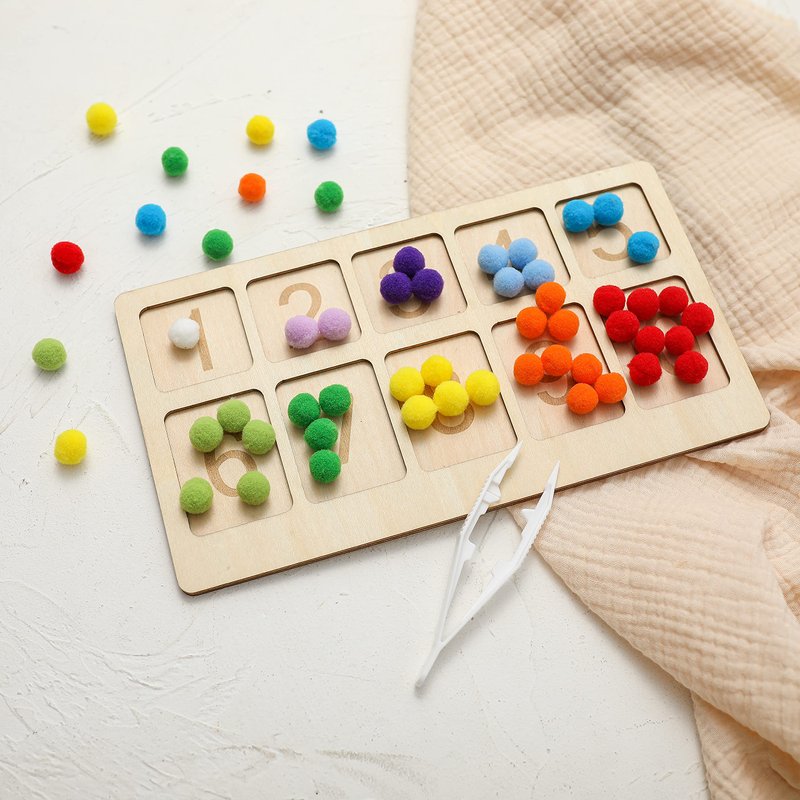 - [Safety Material]-The digital board is made of pure natural wood, hand-polished, no irritating smell, strong and durable; The beads are made of felt wool, which can be easily clamped by the baby without slipping off