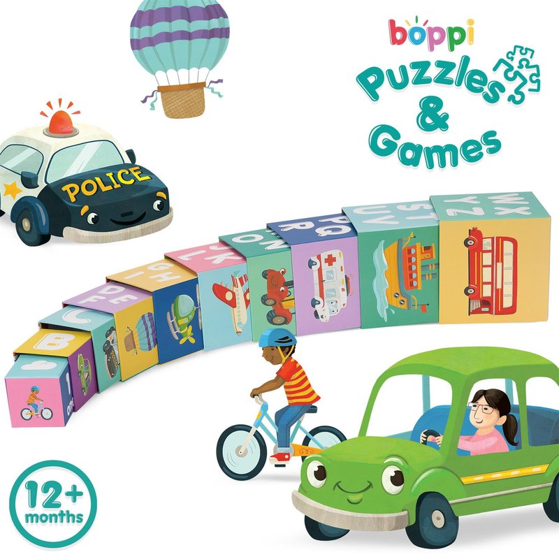 boppi Baby Stacking Blocks Vehicle Toys with Letters and Numbers, Montessori Cubes for Toddlers, Preschool Learning Toys