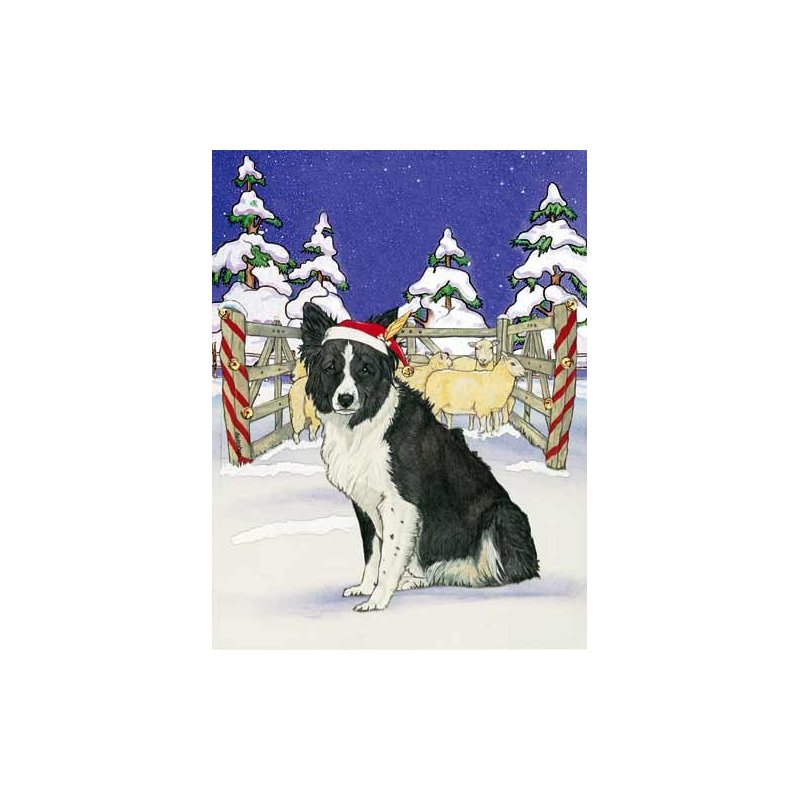 Border Collie Christmas Cards Santa's Cap : 10 Holiday Cards with Envelopes