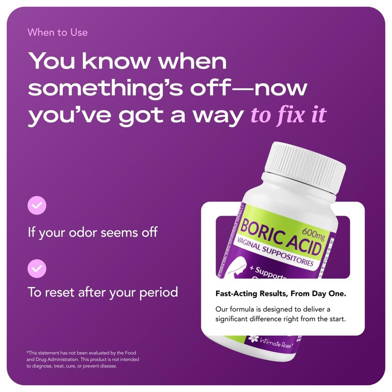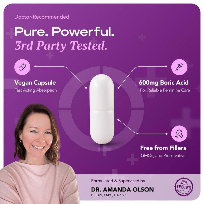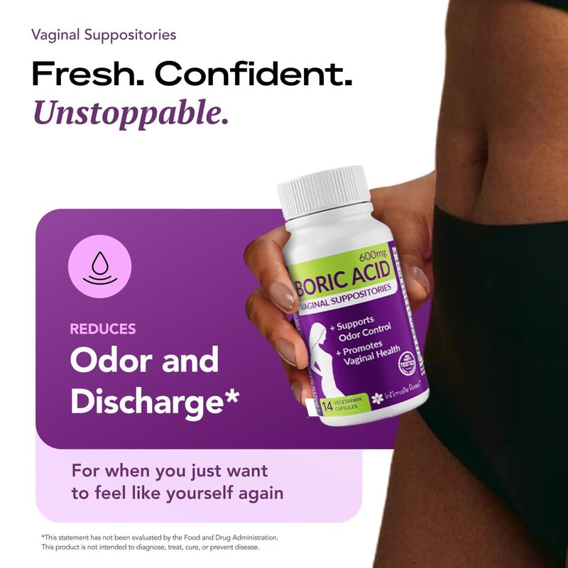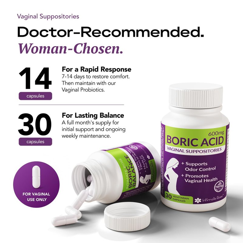 Boric Acid Vaginal Suppositories for Women – 100% Pure, Made in USA – Restores pH Balance & Controls Odor – Supports Relief from Discomfort & BV – 14 Capsules