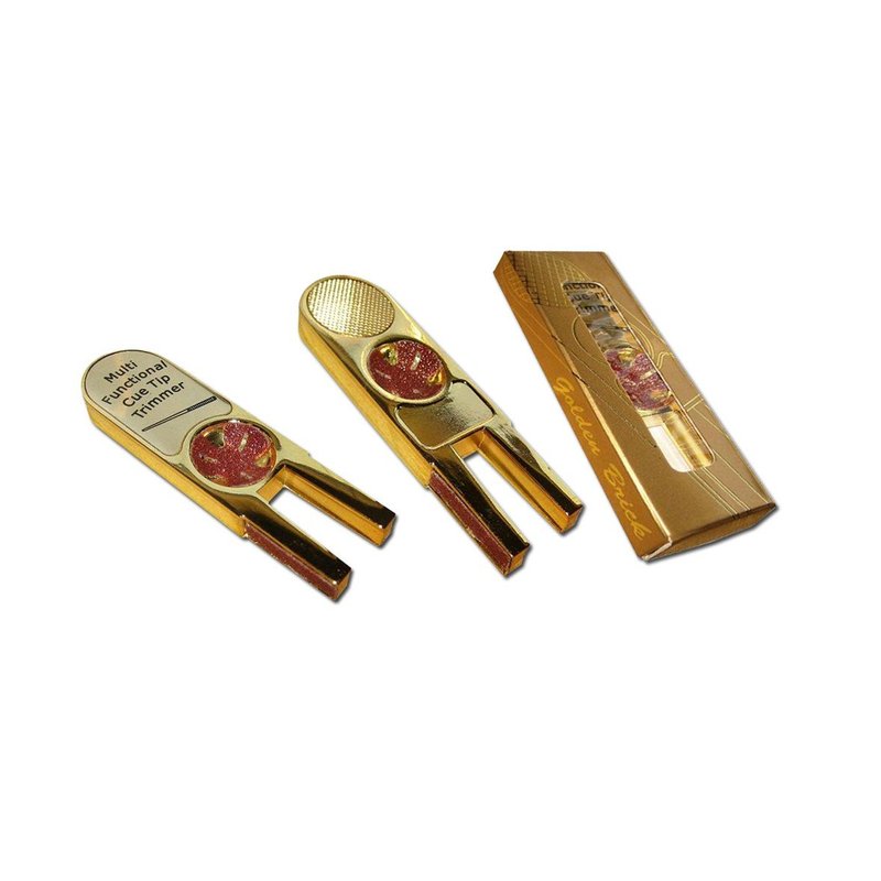 - The classic cue tool, the Golden Brick is the most popular cue tip manicuring tools. It has been a mainstay for years. And, this is the Genuine Golden Brick made of Die Casting Zinc instead of aluminum, and it's twice heavier (3 oz) and much solid than Aluminum version (1.5 oz). The strongest and long lasting cue tool on the market.
