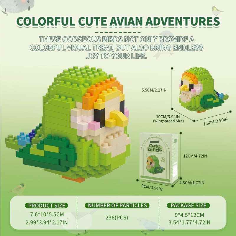 - Colorful Avian Collection: vividly designed parrot-toys themed micro-building sets. From the toy striking Red Macaw to the toy charming Cockatiel, bring the excitement of vibrant avian life right into your hands.