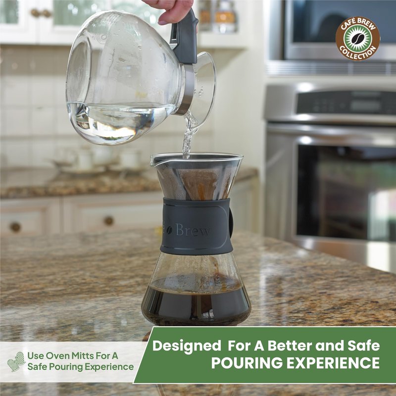 Elevate your tea-making experience with the Café Brew Collection Borosilicate Glass Stove Top Whistling Tea Kettle. Crafted with precision and quality in mind, this kettle combines German-made borosilicate glass, a 12-cup capacity, and versatile compatibility with gas, electric, and glass cook-tops to provide an exceptional tea brewing companion. The hallmark of this kettle is its ability to transform the simple act of boiling water into a captivating spectacle. The high-quality Borosilicate Glass, sourced from Schott DURAN in Germany, allows you to witness the water come to a gentle, rolling boil. It's a mesmerizing display that sets this kettle apart from mundane metal counterparts. Whether you're an avid tea enthusiast or just starting your tea journey, this feature adds an extra layer of fascination to your tea-making ritual. Beyond its aesthetic appeal, this glass kettle is designed for safety and convenience. Crafted from heat-resistant Schott DURAN borosilicate glass, it's not only BPA-free but also dishwasher top-rack safe, ensuring effortless cleaning after each use. The peace of mind that comes with a lead-free and safe-to-clean kettle enhances the overall tea-drinking experience. Versatility is another strong suit of this kettle. It seamlessly fits into your kitchen, whether you have a gas, electric, or glass cook-top. We've included a steel heat-diffusing trivet to enhance its performance on electric ranges. This adaptability ensures that no matter what kind of stove you have, your kettle can keep pace with your tea cravings. The functionality of this glass kettle extends to its whistling lid. When the water reaches the perfect boiling point, the lid emits a cheerful whistle, signaling that your brew is ready. Whether you're savoring a soothing cup of chamomile, brewing a bold espresso, or simply boiling water for pasta, this German-made glass kettle ensures your water is prepared to perfection.