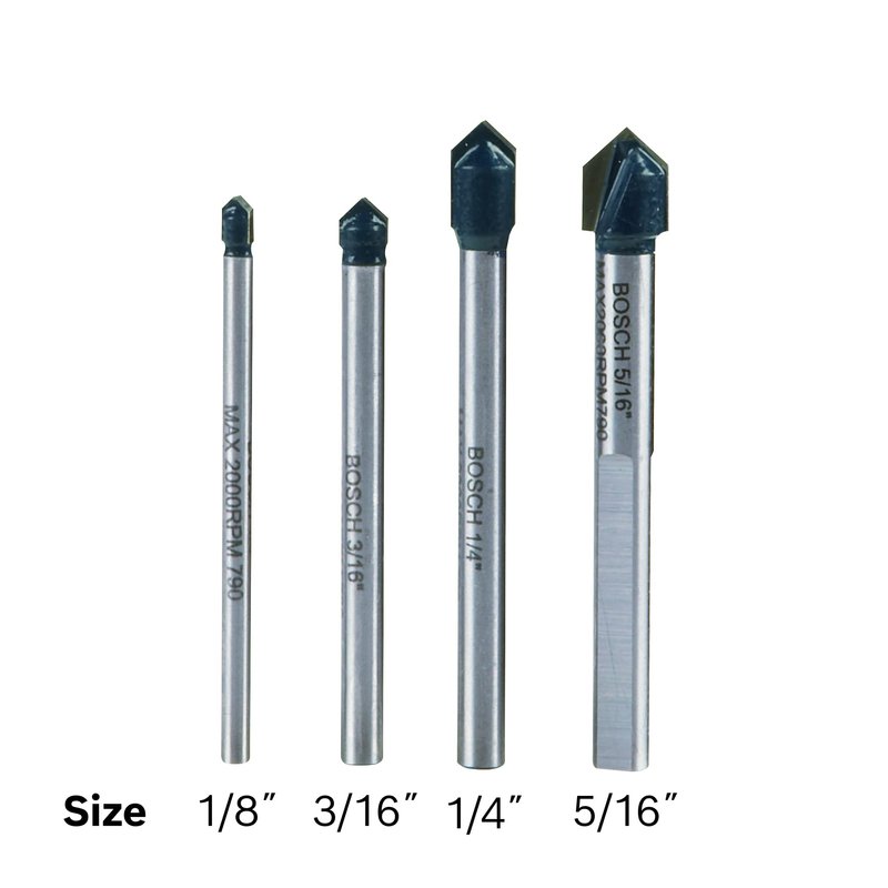 - RELIABLE: The three flat shank provides superior grip on 5 16 in. bits and larger to prevent slippage. The Bosch Glass & Tile bits are easy to use while still providing best-in-class speed so you can get the job done faster