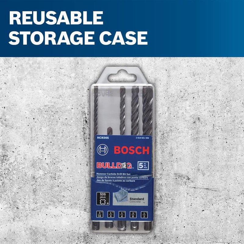 BOSCH HCK005 5-Piece Assorted Set SDS-Plus Bulldog Rotary Hammer Bits Ideal for Applications in Masonry, Brick, Block, Concrete