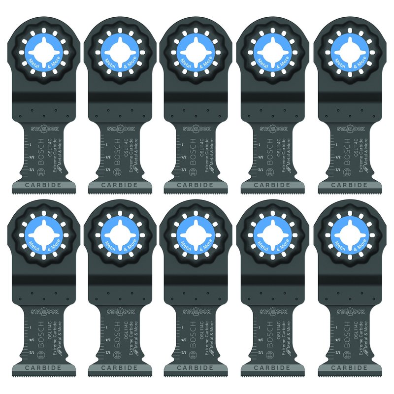 BOSCH OSL114C-10 10-Pack 1-1/4 In. Starlock Oscillating Multi Tool Metal & More Carbide Extreme Plunge Cut Blades for Cutting Iron Bar, Metal, Wood with Nails, Drywall and Tile