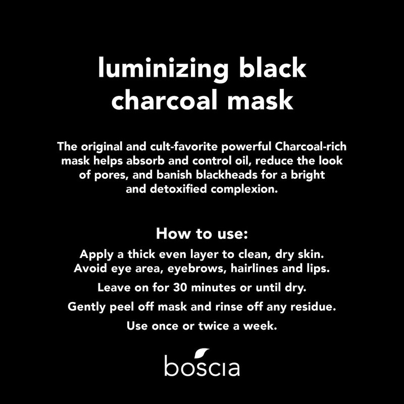 boscia Luminizing Charcoal Mask - Vegan, Cruelty-Free, Natural Skin Care - Peel-Off Face Mask with Activated Black Charcoal - Blackhead Remover & Pore Cleaner - For All Skin Types - 2.8 oz