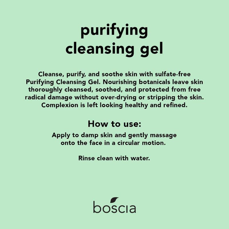 BOSCIA Purifying Cleansing Gel - Cleanser Face Wash - Vegan & Cruelty-Free - With Hydrating Green Tea Antioxidants - Natural Clean Skincare for Dry, Normal, Combination & Oily Skin Types - 9.8 fl oz