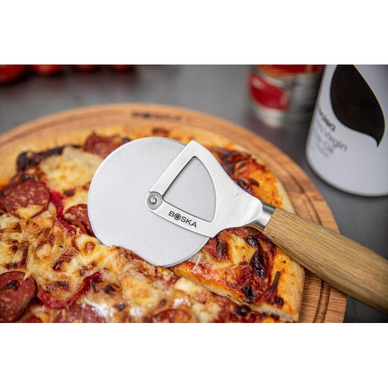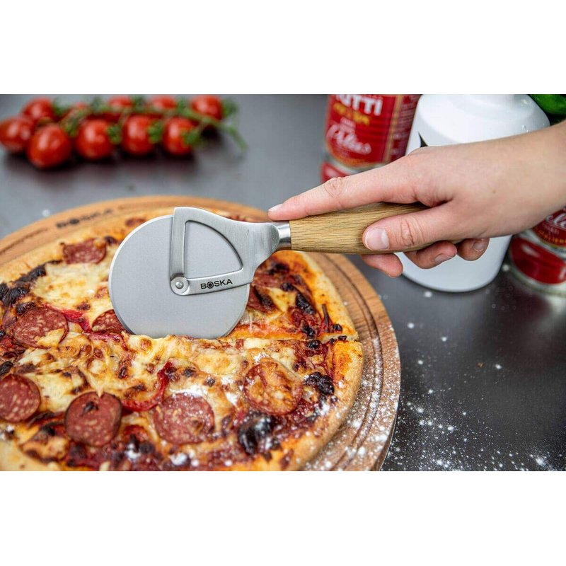 Boska Stainless Steel Pizza Cutter - Oslo Multifunctional Pizza Wheel Cutter - Handheld Food Slicer - Silver Non-Stick Roller - For Kitchen Cooking