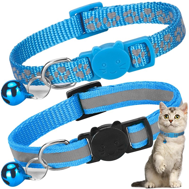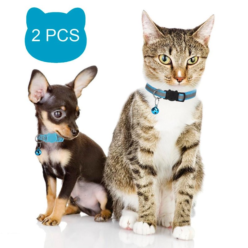 Bosose 2 Pack Cat Collar with Bells, Reflective Collars for Cats with Breakaway Safety Buckle, Nylon, 7-12 Inch Adjustable, Blue