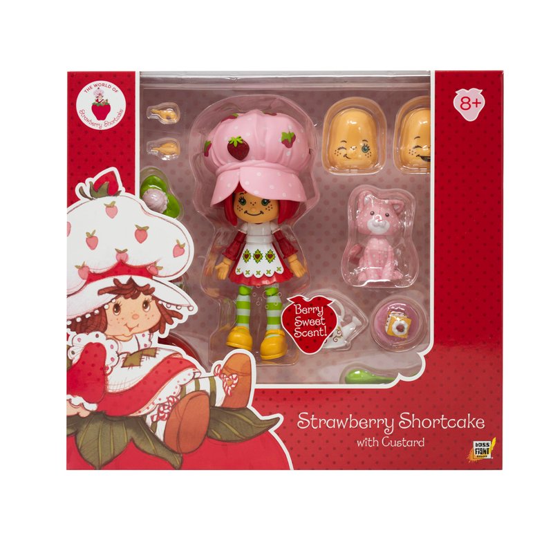 - Incredible Articulation: This sweetie pie figure features multiple articulation points on the arms, legs, and head; included are interchangeable hands, alternate face plates, Custard the Kitten figurine, and accessories so Strawberry can enjoy her favorite treats, tend to her garden, or go berry-picking with Custard; super poseable with included display stand to capture your favorite classic moments