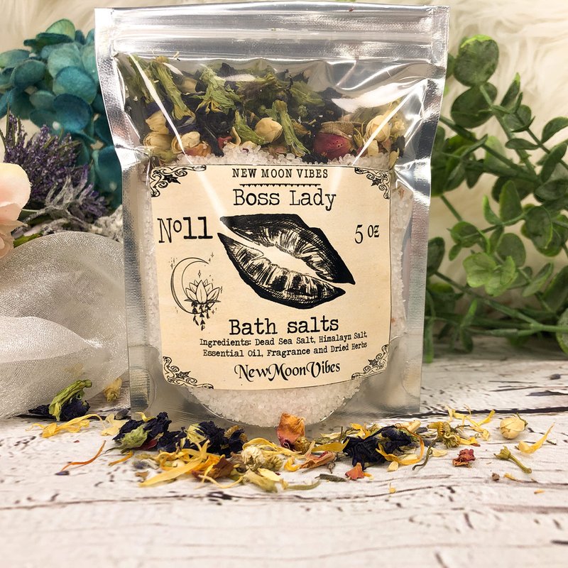 Boss Lady Essential Oils Herbal Spell Ritual Bath Salts with Real Herbs Botanicals Infused Beauty Love Power Control Women Success Confidence Attain Dreams Goals Self Love Acceptance Draw New Luck