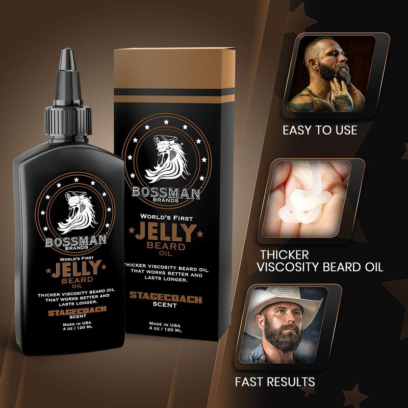 Bossman Beard Oil Jelly (4oz) - Beard Growth Softener, Moisturizer Lotion Gel with Natural Ingredients - Beard Growing Product (Stagecoach Scent)