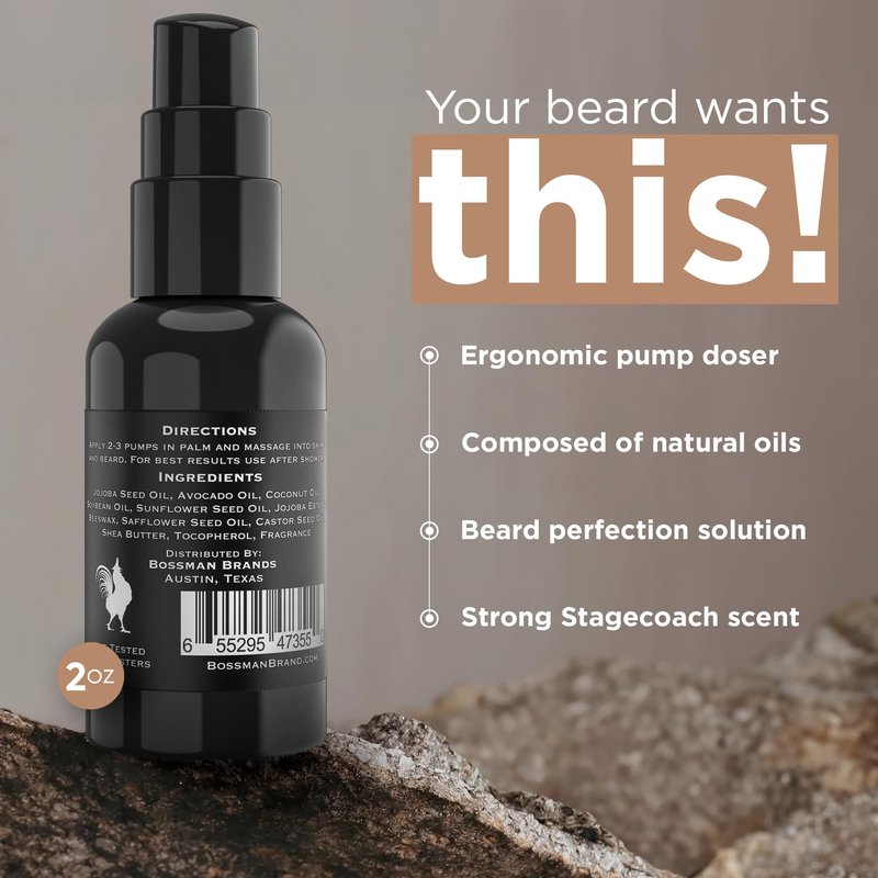 Bossman Brands Beard Oil 2oz All Natural Oils with Essential Oil Scent (Stagecoach)
