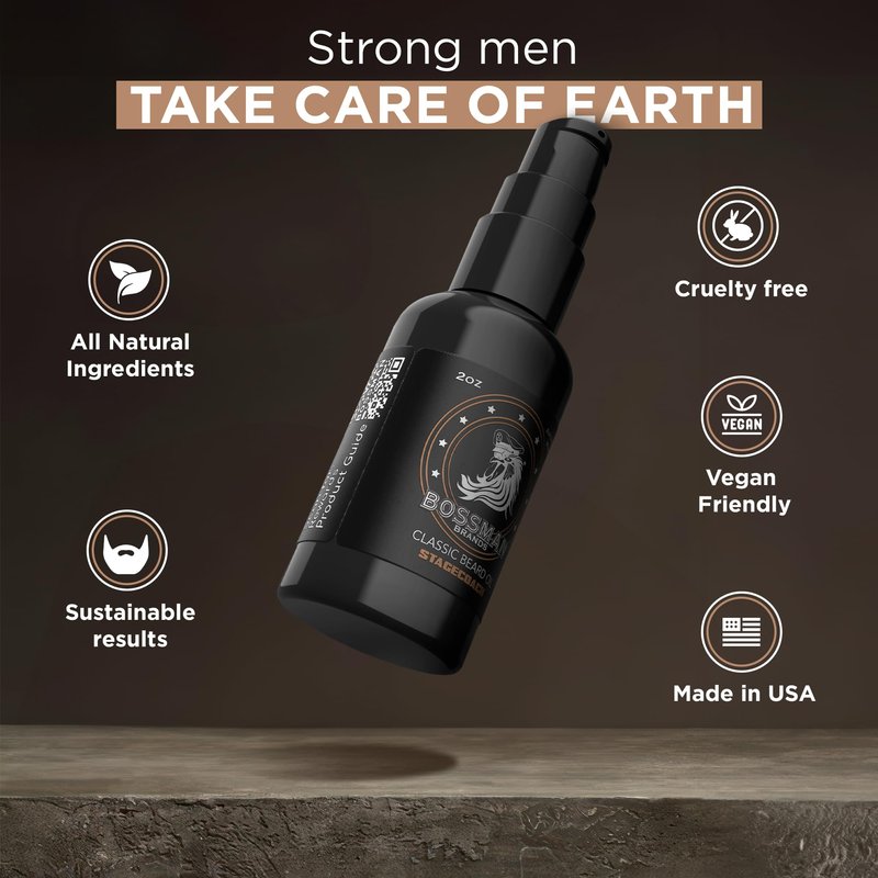Bossman’s Beard Oil for Men strengthens + softens hair, relieves itching + irritation, and has a great long-lasting scent. Our mens beard oil scented is exactly what you need to keep your beard looking, feeling, and smelling fresh all day long no matter how active or grueling the lifestyle. We stand behind our beard products because they’re made by humans with beards, tested by humans with beards, and are for other humans with beards. If you are experiencing flaking or a dry face, otherwise called “Beardruff”, after your first use, Bossman beard oil natural will immediately eliminate this issue and it will never come back. See directions below for use in the 4 Stage Beard Care Process: DIRECTIONS: 1. In the shower, use a natural soap (Bossman’s 4-1 Exfoliating Bar Soap). This soap is free of foaming agents that dry out your face and create “Beardruff”, at the same time it moisturizes the pores and beard so you are ready for your next step. 2. After you have washed your beard with Bossman’s 4-1 Exfoliating Bar Soap apply Bossman’s Fortify Intense Conditioner. Wait a few minutes then wash out. This amazing product will replenish and rehydrate your beard from daily activities such as wind, sun, and any dirty job your beard faces. 3. Immediately after the shower, apply Bossman’s Original BEARD OIL. This is the perfect time to apply as most of us take a warm shower creating your pores to become open and ready to accept an oil application. Once the oil reached into your pore, this lubrication is eliminate and dryness in your face and eliminate flaking. 4. Using your finger or the back of your thumb, get about a dime-size amount of Bossman’s Relaxing Beard Balm, warm in up into your palms, and apply it to your beard and mustache thoroughly. You may use your fingers to apply, but for best results use any Bossman comb or brush to get the products down into your pores and completely from root to tip of your beard hair.
