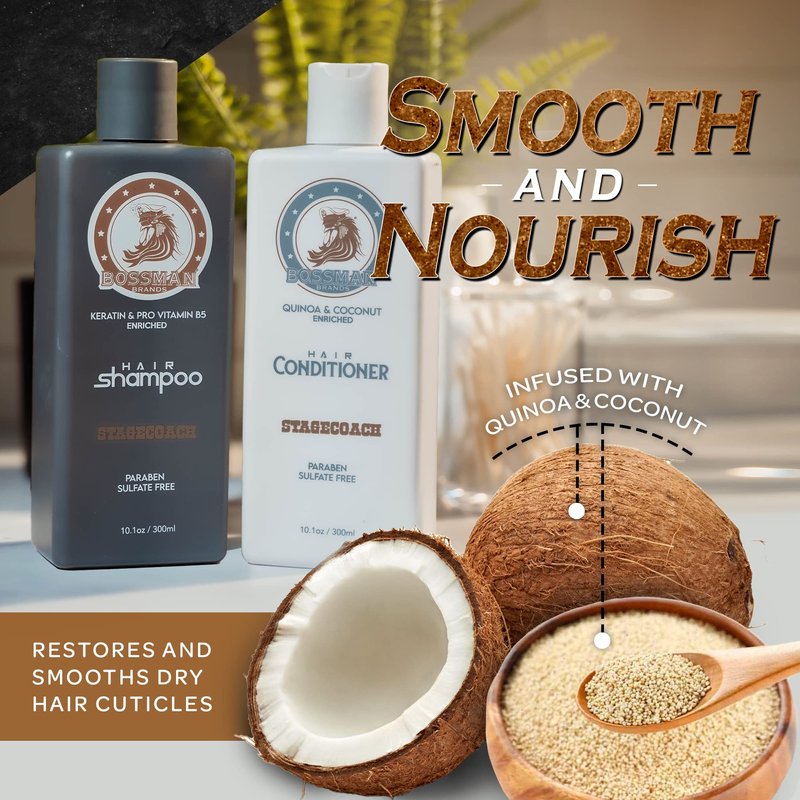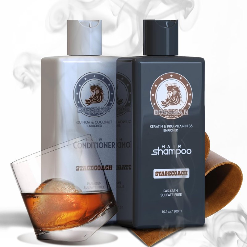 Bossman Hair Shampoo and Conditioner Combo - Hydrating, Strengthening, and Soothing Formula for Men's Hair - Paraben Free & Sulfate Free (Stagecoach)