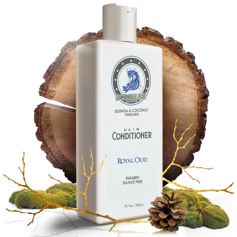 Bossman Moisturizing Hair Conditioner for Men – Stimulates, Hydrates, Soothes Men's Hair and Scalp – Natural Quinoa & Coconut Enriched - Paraben & Sulfate Free (Royal Oud Scent)