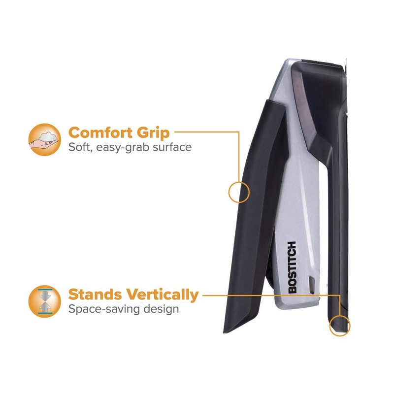 Bostitch Office Executive 3 in 1 Stapler, Includes 210 Staples and Integrated Staple Remover, One Finger Stapling, No Effort, 20 Sheet Capacity, Spring Powered Stapler, Black/Gray (INP20)