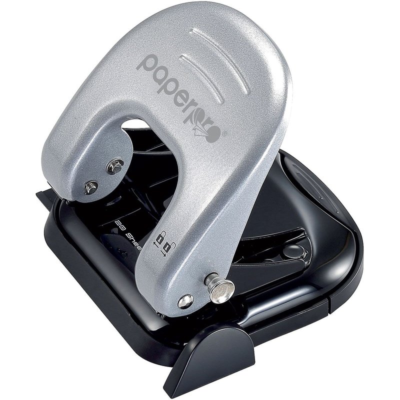 - Punches standard two-hole configuration