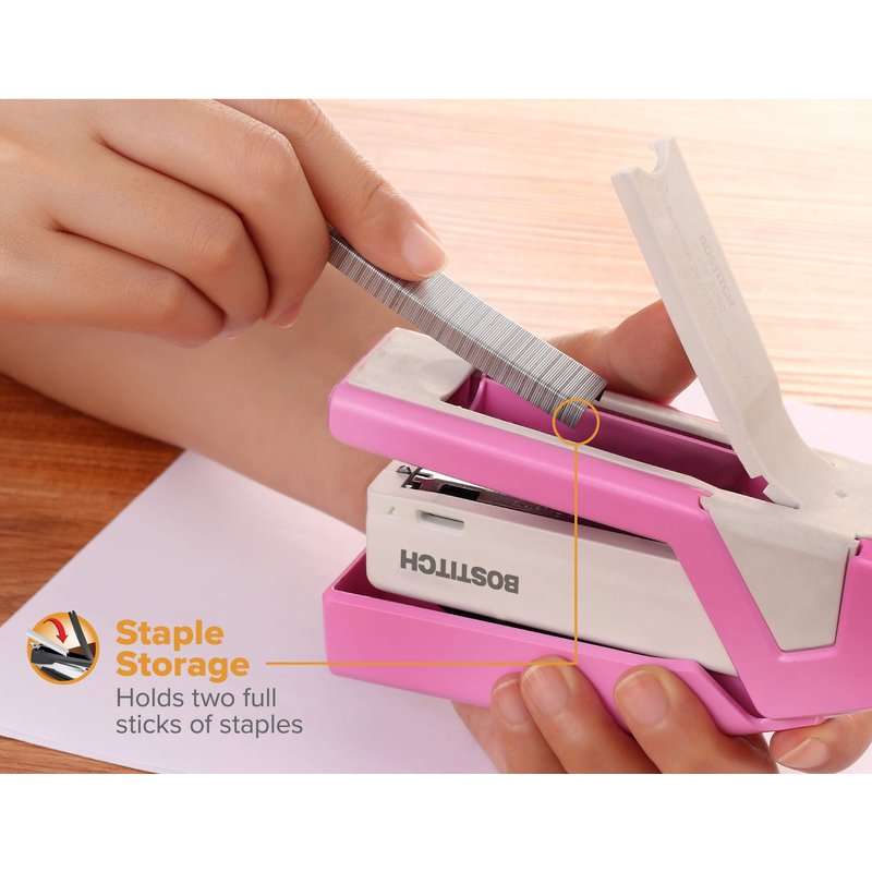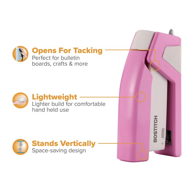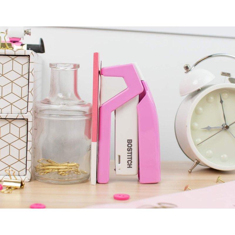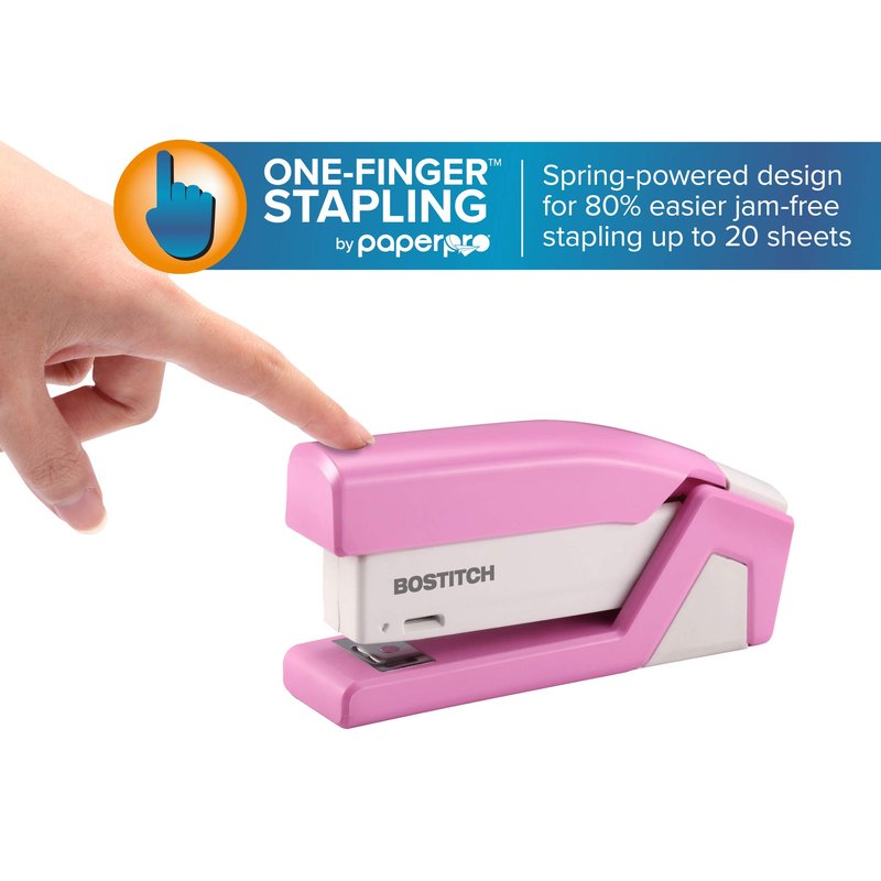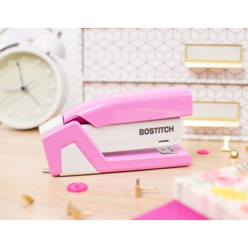 Bostitch Office InCourage Spring-Powered Compact Stapler, BCA Pink (1588), plastic-half strip