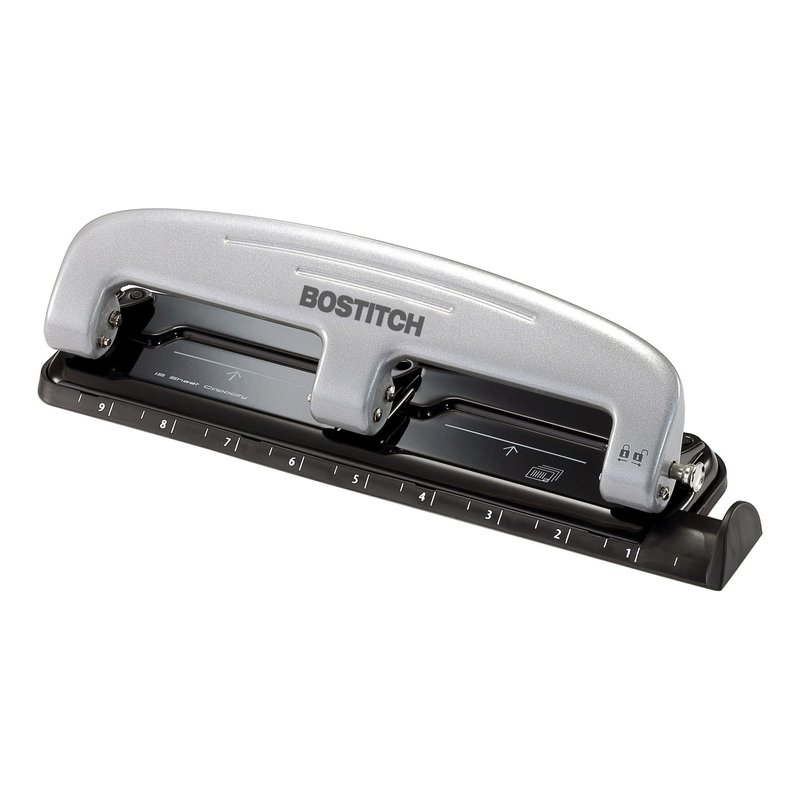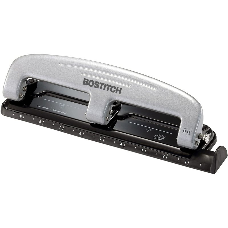 Bostitch Office inPRESS 12 Reduced Effort Three-Hole Punch, Silver/Black (2101)