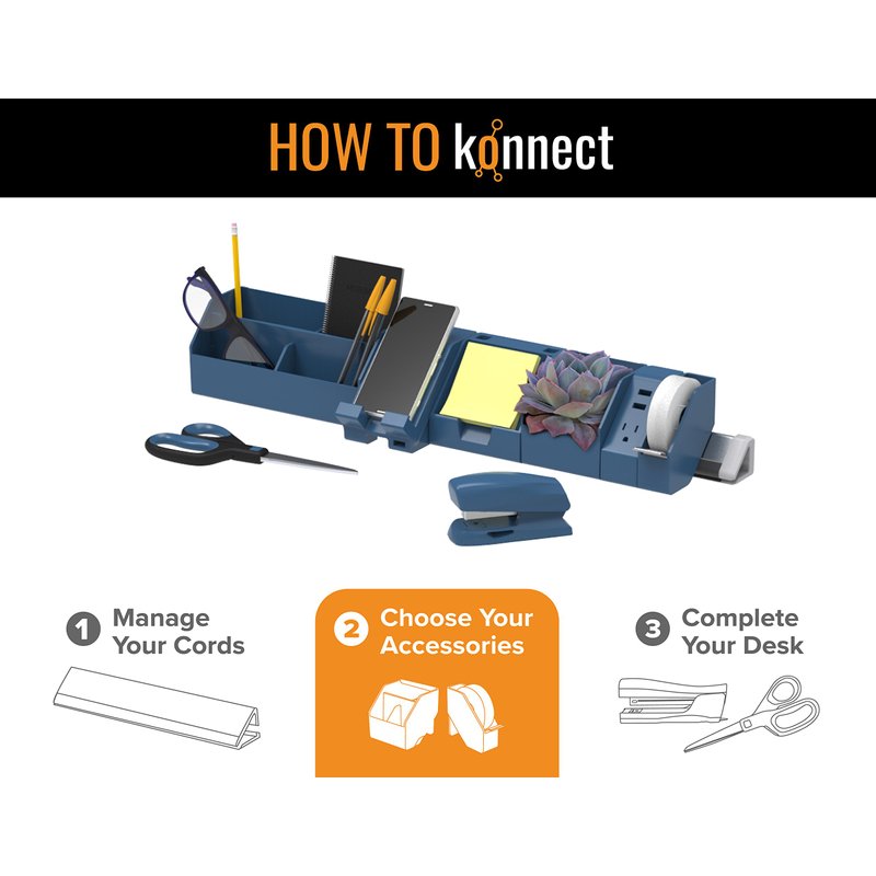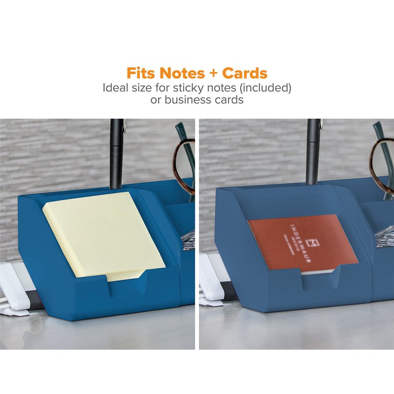 Bostitch Office Sticky Note Holder + Business Card Stand, Includes Pen Holders, Blue