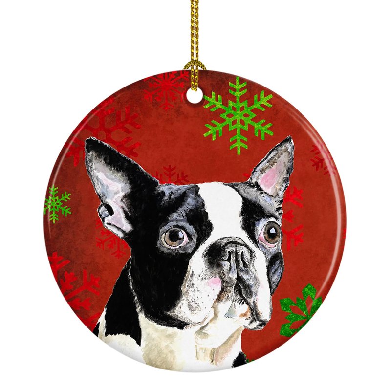 Boston Terrier Red Snowflakes Holiday Christmas Ceramic Ornament SC9400