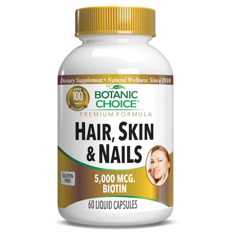 Botanic Choice Hair, Skin & Nails – Biotin Supplement with Collagen, Vitamin C, & Iron – Super Antioxidant Blend with Argan Oil & Hyaluronic Acid Vitamins for Women and Men – (60 Liquid Capsules)