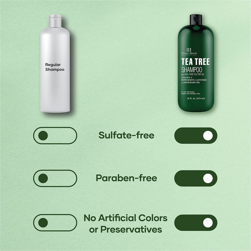 - Soothes Itchy & Dry Scalp : The Botanic Hearth Tea Tree Shampoo contains natural tea tree oil that provides a calming effect on the scalp, relieves dryness & itchiness while leaving the hair feeling clean & refreshed