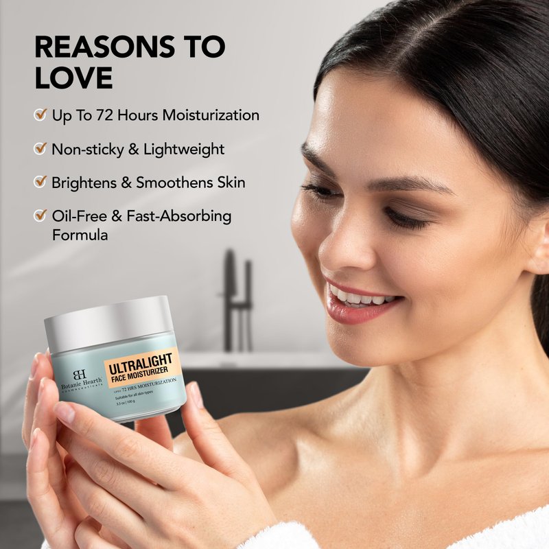 - Adds Hydration Boost: Botanic Hearth Ultra Light oil free Face Moisturizer for women and men helps add a powerful boost of hydration to even out skin tone and make skin firmer