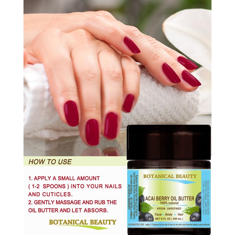Botanical Beauty ACAI BERRY OIL BUTTER RAW VIRGIN UNREFINED BLEND for Face, Body, Hair, Lip and Nails. Organic Coconut Oil and Acai Berry Oil 8 Fl. oz. - 240 ml. Rich in Vitamin E