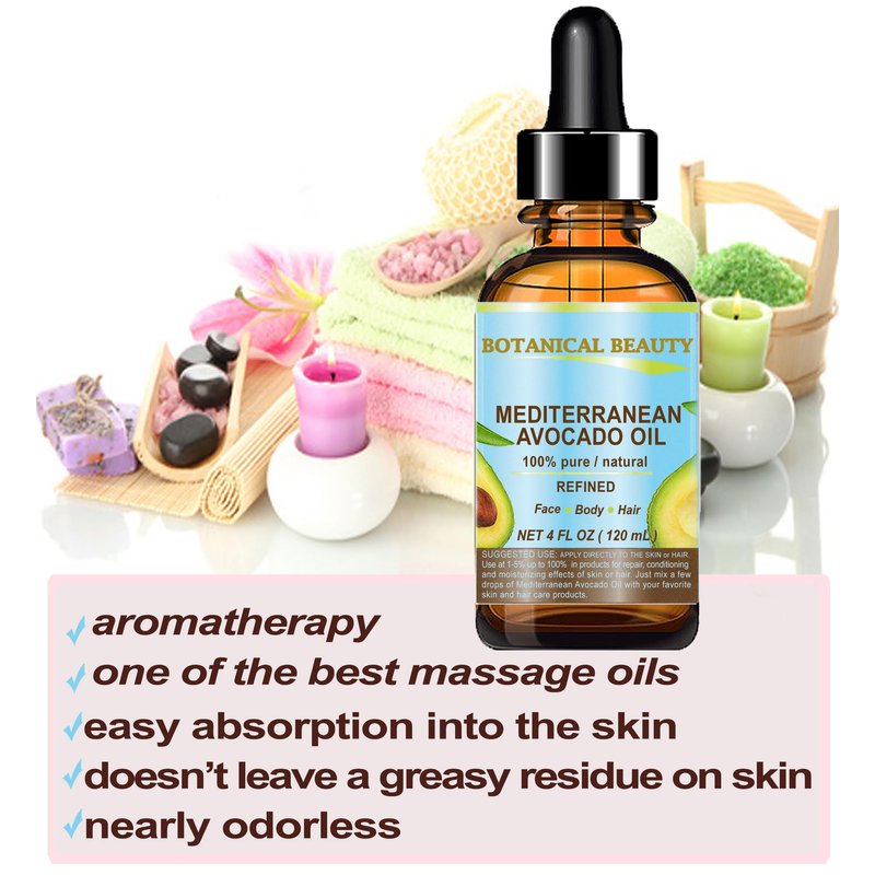 - Botanical Beauty AVOCADO OIL is 100 PURE UNDILUTED REFINED with no chemicals or synthetic solvents. No fillers, additives or artificial fragrances added, does not clog the pores. Absorbs quickly, leaving a light, non-greasy feeling. Not tested on Animals, DOES NOT CONTAIN ANY PRESERVATIVES.