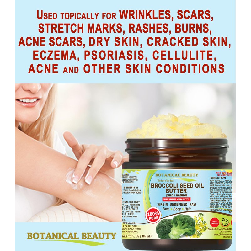 - Botanical Beauty BROCCOLI OIL BUTTER 100% Pure Natural VIRGIN UNREFINED Cold-Pressed 4 Fl oz 120 ml for Face, Skin, Body, Hair, Lip, Nails. Rich in Vitamin C, Vitamin E, Omega 3, Omega 6