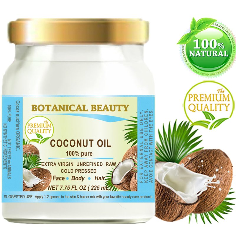 Botanical Beauty COCONUT OIL WILD GROWTH Pure EXTRA VIRGIN UNREFINED Natural Undiluted COLD PRESSED 7.75 Fl.oz 225 ml for Face, Skin, Hair, Lip, Nails