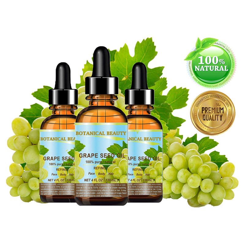 GRAPE SEED OIL is currently considered to be the best oil for natural, anti-aging skin care products with restorative properties for all skin types, especially for dry or mature aging skin, chapped and cracked skin, balances the moisture in the skin, and leaving skin soft and smooth.Botanical Beauty GRAPE SEED OIL is excellent for use after exposure to the sun.