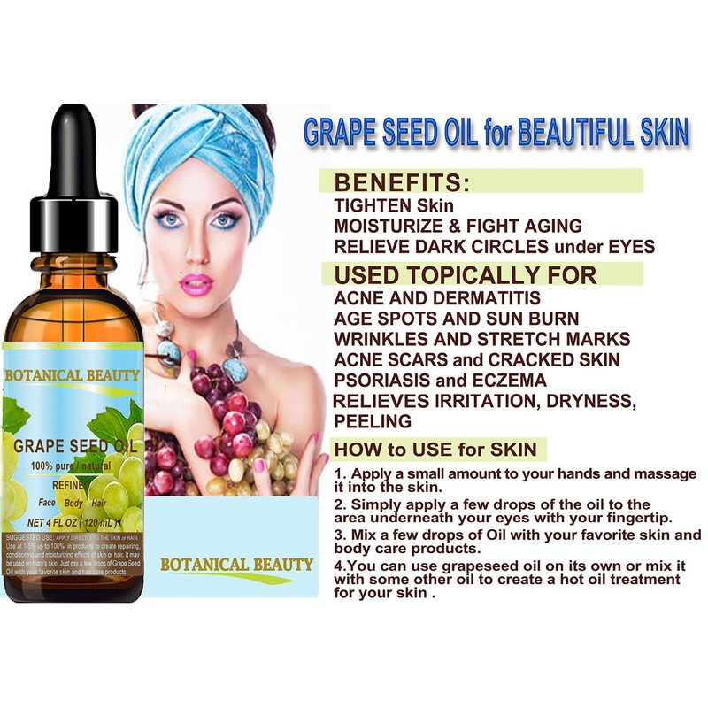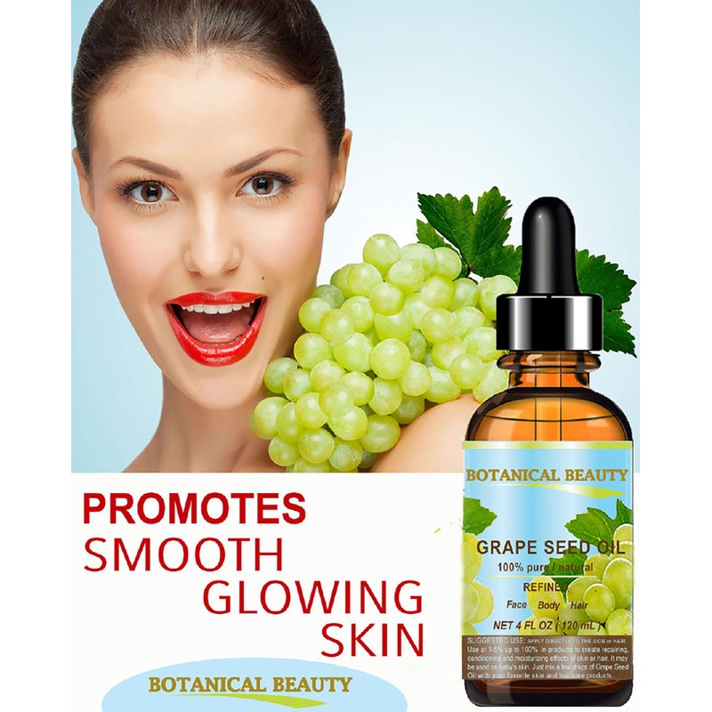 - Botanical Beauty GRAPE SEED OIL for all skin types, also for dry, flaky, chapped, cracked, sensitive and mature skin types. Botanical Beauty GRAPE SEED OIL Vitis Vinifera REFINED Cold Pressed Carrier Oil is one the richest natural sources in polyunsaturated fatty acids, including linoleic acid and oleic acid, and vitamin E as well as a variety of B-group vitamins.