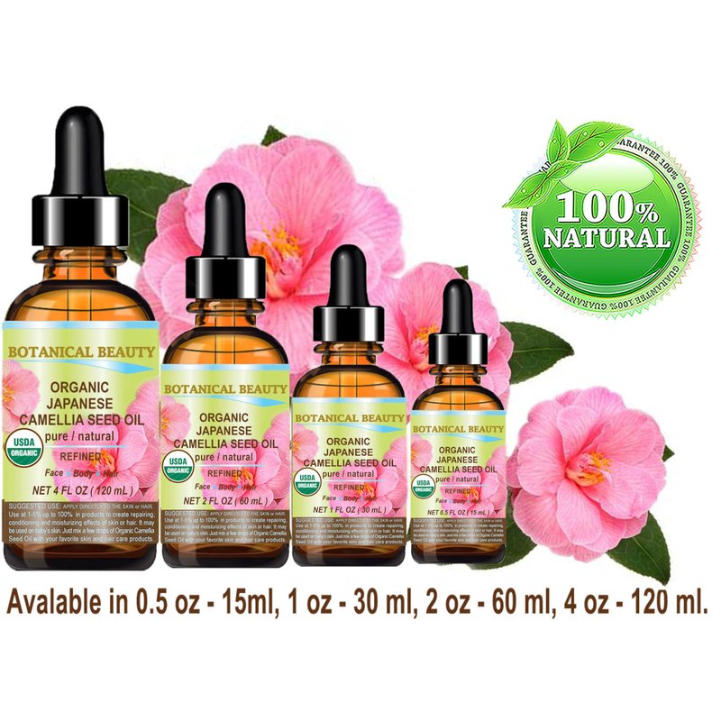 - Botanical Beauty Japanese ORGANIC CAMELLIA Seed Carrier Oil 100 % Pure Natural, HYPOALLERGENIC. It is a light, non-greasy oil that easily blends into the skin and leaves it smoother and more resilient. Unscented. A Little Goes a Long Way, Absorbs Quickly, Not tested on Animals, Does not contain any preservatives.