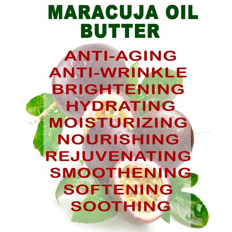 The MARACUJA OIL is currently considered to be the best oil for natural, anti-aging skin care products with restorative properties for all skin types, especially for dry or mature aging skin, chapped and cracked skin, balances the moisture in the skin, and leaving skin soft and smooth.The MARACUJA OIL BUTTER provides intense hydration without clogging pores, making it an excellent choice for various skin types. The oil helps maintain skin's moisture balance, leaving it soft, supple, and nourished.