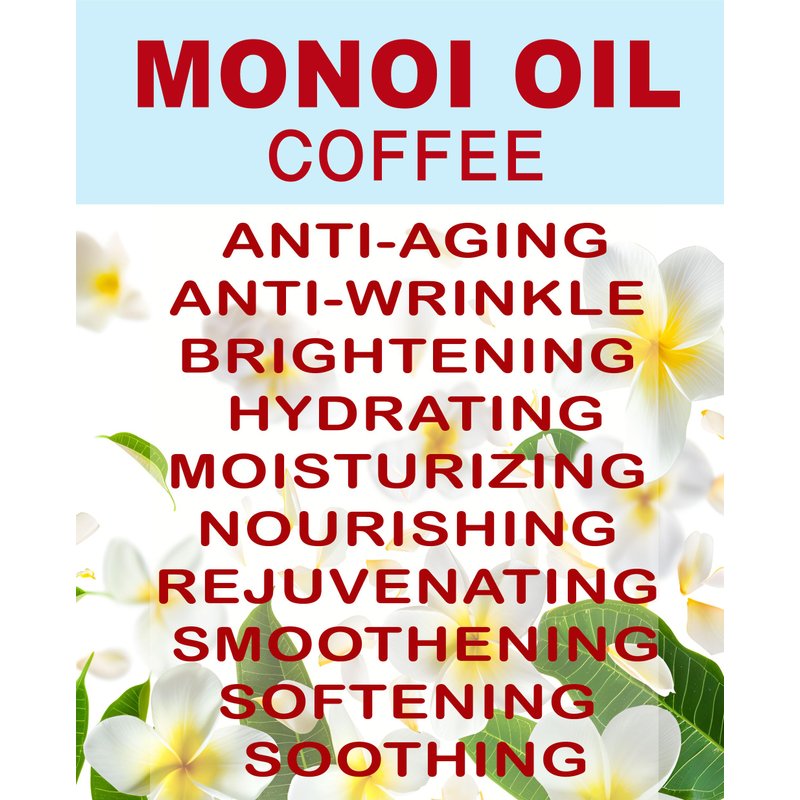 - MONOI OIL Coffee absorbs easily into the skin. Hydrating, Moisturizing, Nourishing, Rejuvenating, Smoothening, Softening, Soothing, Anti-aging, Anti-wrinkle, Brightening. Great addition for soap, creams, lotions, body butter, and more. It is a great massage oil or body balm.