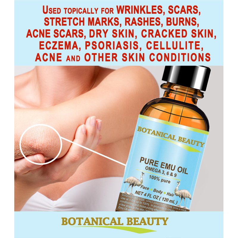 Botanical Beauty PURE EMU OIL 100% Natural UNREFINED for FACE, SKIN, BODY, HANDS, FEET, NAILS, HAIR, LIP CARE 4 Fl. oz. - 120 ml
