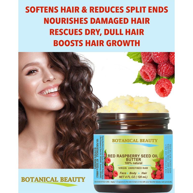 Hair Nourishment and Conditioning.RED RASPBERRY SEED OIL BUTTER is lightweight and quick-absorbing texture serves as an effective hair conditioner, promoting smoothness and shine without weighing hair down.