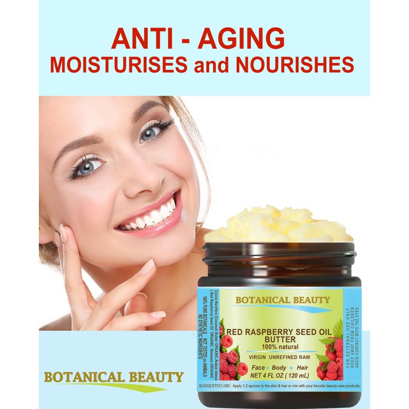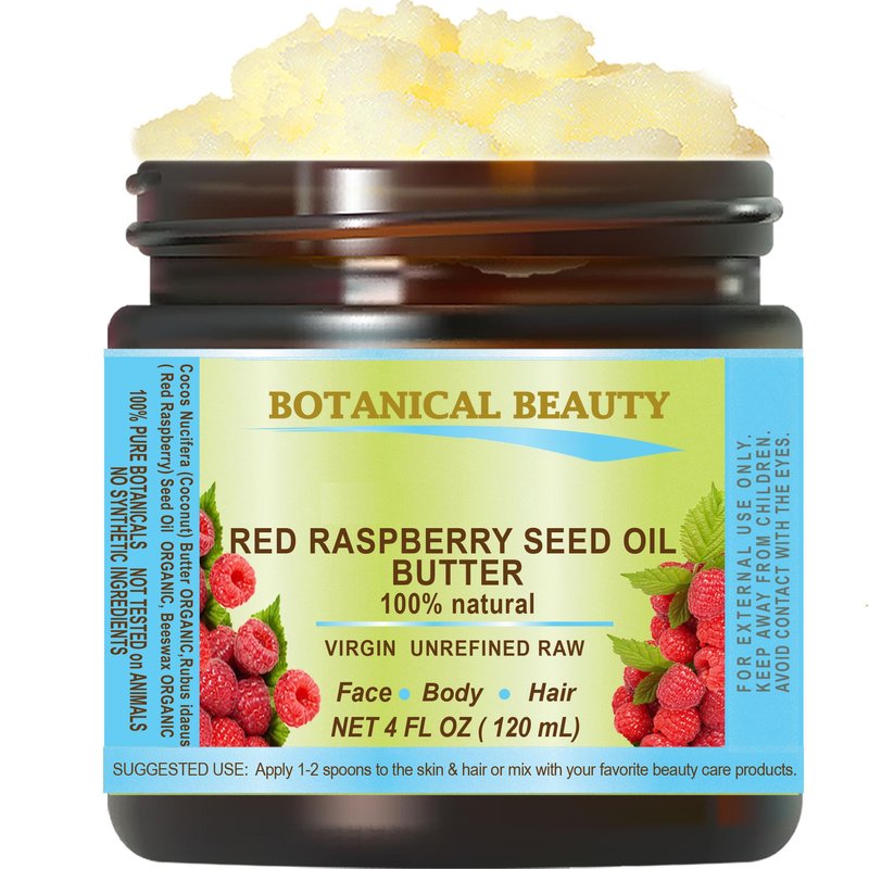 Botanical Beauty RED RASPBERRY SEED OIL BUTTER RAW 100% Pure Natural VIRGIN UNREFINED Cold-Pressed 4 Fl oz 120 ml for Face, Skin, Body, Hair, Lip, Nails Rich in Vitamin E, Vitamin C