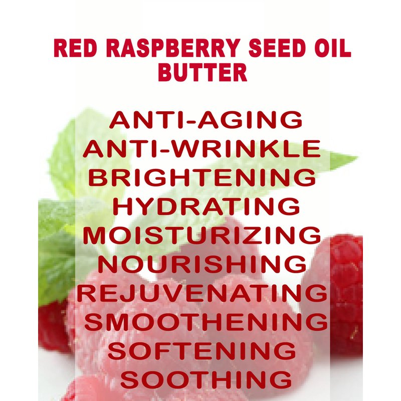 The RED RASPBERRY SEED OIL BUTTER is widely considered an " a Vitamin Beauty Butter for SKIN AND HAIR.". RED RASPBERRY SEED OIL BUTTER is Anti-aging, Anti-wrinkle, Brightening, Hydrating, Moisturizing, Nourishing, Rejuvenating, Smoothening, Softening