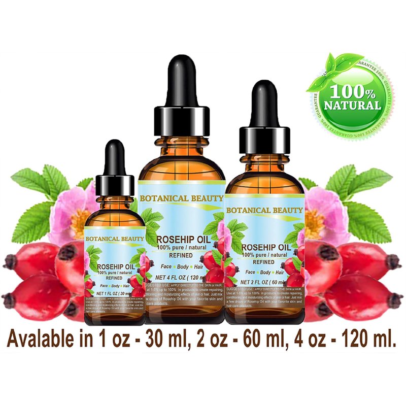 Botanical Beauty ROSEHIP OIL Pure Natural Refined Undiluted for Face, Body, Hair and Nail Care. 1 Fl.oz.- 30 ml Anti-Aging Moisturizer Hydration Facial Oil