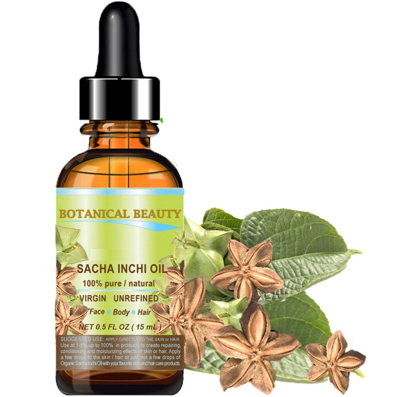 Botanical Beauty SACHA INCHI OIL 100% Pure Natural Undiluted Virgin Unrefined. 0.5 Fl.oz.- 15 ml. For Face, Skin, Hair, Lip and Nail Care.