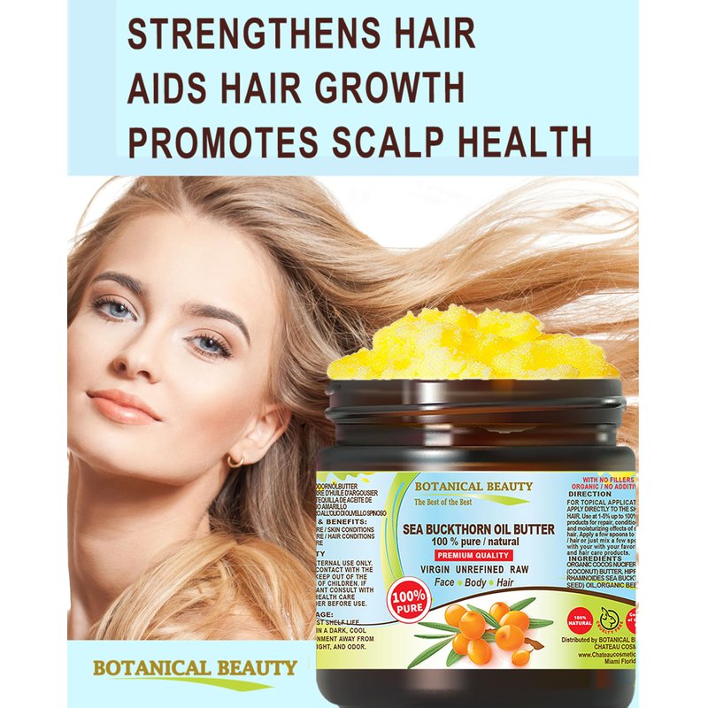 Botanical Beauty SEA BUCKTHORN OIL BUTTER Pure Natural Virgin Unrefined RAW 4 Fl. Oz.- 120 ml for FACE SKIN BODY HAIR NAILS, vitamin C