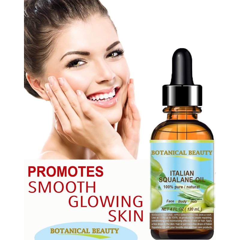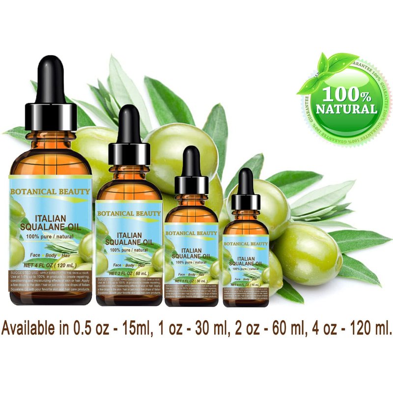 Botanical Beauty SQUALANE Italian Olive. 100% Pure/Natural/Undiluted Oil. 1 fl.oz- 30ml. 100% Ultra-Pure Moisturizer for Face, Body & Hair. Reliable 24/7 skincare protection