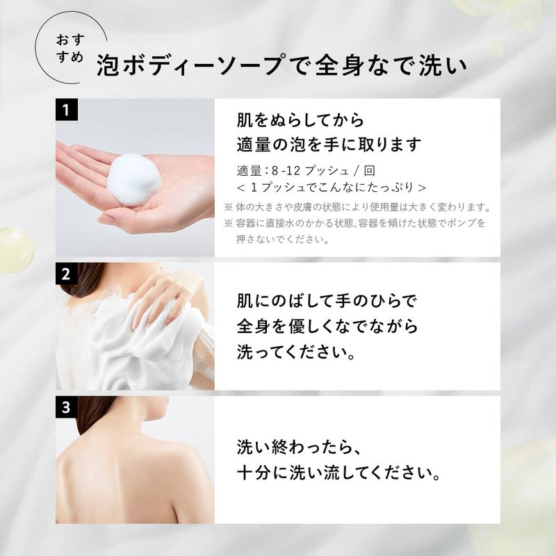 - 【Japanese High Dense & Elastic Foam Body Soap】Enjoy the rich, dense, and elastic foam created using advanced Japanese techniques. This luxurious foam provides a thorough yet gentle cleanse, making your skin feel refreshed and revitalized.