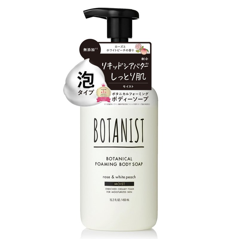 Botanist Japanese Organic & Natural Foaming Body Soap, Moisturizing Shea Butter Dense Foam Body Wash with Pump, Moist Body Gel for Moisturized Skin, Additive-Free, Rose & White Peach 450 mL/15.2 fl Oz