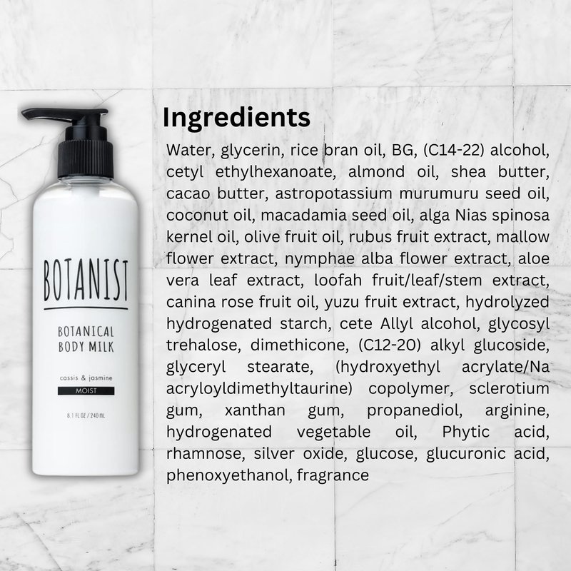 Botanist Moisturizing Body Lotion, Botanical Soothing Body Milk for Sensitive Dry Skin, Natural & Organic Japanese Skin Care, Cassis & Jasmine, Moist, 8.1 Fl Oz/ 240mL